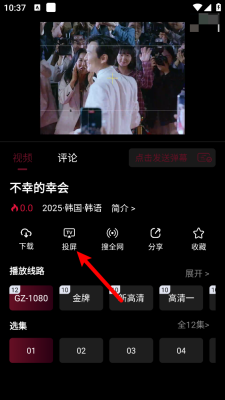 3、进入播放详情页点击"投屏"按钮。