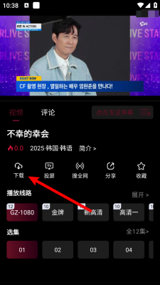 1、打开软件,在播放详情页点击""按钮。