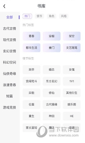 2、进入【书城】后点击【书库】,借助各类大小分级标签来查找自己感兴趣的小说类型。
