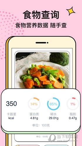 热量查询:查询食物的卡路里和营养元素,了解每天的运动消耗情况。