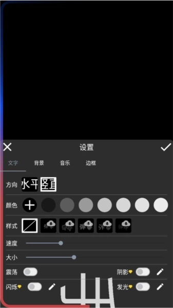 动画效果设置:拖动速度条可调节滚动速度,勾选闪烁或左右震荡选项能增添动态效果。