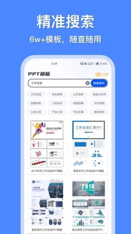 不知道用哪个模板?搜关键词就行!比如年终总结销售报表毕业答辩,秒出结果!
