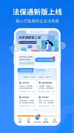 法保网是浙江法之道信息技术有限公司开发的法律服务平台,用户可在此获取法律知识、在线咨询律师、预约律师服务,还能使用合同文库、合同定制、诉讼费计算、违约金计算等功能,解决合同问题与纠纷时无需担忧法务资源不足。平台提供贴心服务,支持随时咨询,也能在线查询其他企业的信用状况。目前,法保网已服务超87000家企业,累计服务次数超3100万次,覆盖全国300多个地区,应用范围十分广泛。