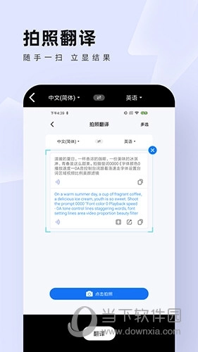 2、中英翻译通支持拍照翻译功能,只需进行拍照就可以快速的为你进行翻译,无需输入;