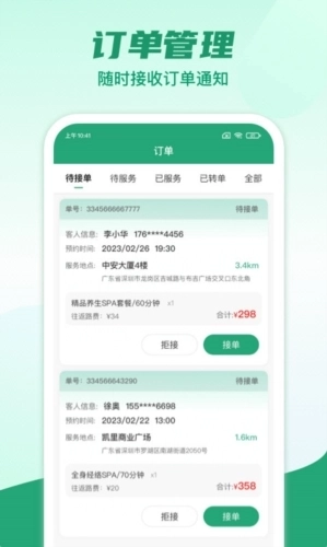 1、轻松即可在此获取到优质按摩接单管理