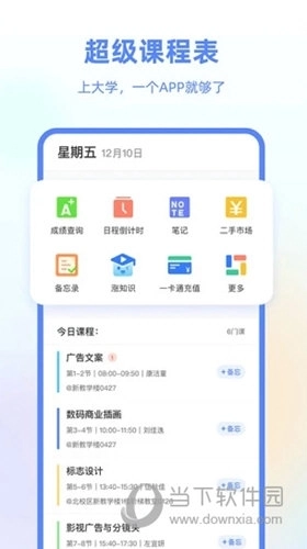 超级课程表是一款专业且出色的手机课程表应用,用户能借助它便捷地导入每学期的课程,进而在软件中清晰知晓每日的课程安排。此外,软件还具备成绩查询、日程倒计时、笔记记录、跳蚤市集等丰富功能,为校园生活提供了贴心的服务支持。这款应用绝非简单的课程表工具,而是大学生活中不可或缺的得力助手,凭借创新的功能设计和细致的用户体验,全方位满足学生群体多样化的需求。