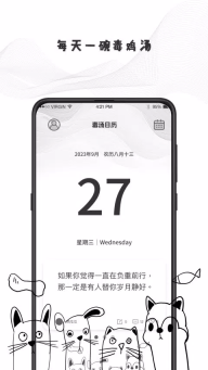 毒汤日历是一款以“毒鸡汤”文化为核心的趣味日历应用。它打破了传统日历一本正经的风格,更像是一本“丧得恰到好处”的生活记录手账。每天,软件都会按时推送直击人心的“毒鸡汤”段子,方便用户在社交平台上自嘲、吐槽或分享丧气语录。除了浏览内容,用户还能自主创作毒鸡汤、转发他人作品、进行点赞互动,甚至可以制作专属表情包来传递这种独特的“毒性”氛围。这款应用不仅能充当实用的日历工具,还是缓解压力的小帮手,通过犀利幽默的毒舌语言,为平淡的生活增添别样趣味。