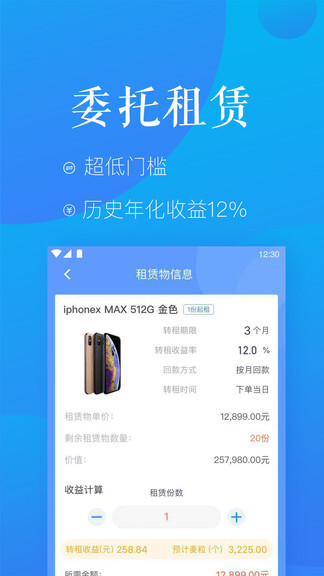 4、委托进行产品线上租赁,完成产品租赁后可获取收益,收益按租赁时间计算。
