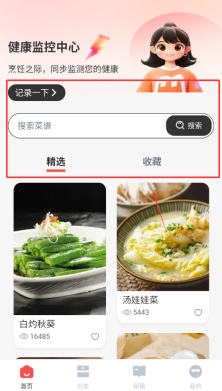 进入首页后,你可以搜索想要制作的菜肴,也能在收藏或精选板块里挑选心仪的菜品,点击对应的选项就能进入详情页面。