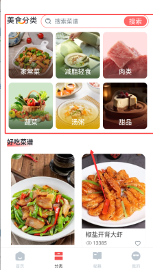 进入美食分类后,可挑选菜谱类别,通过翻阅查找就能选定自己喜爱的菜品。