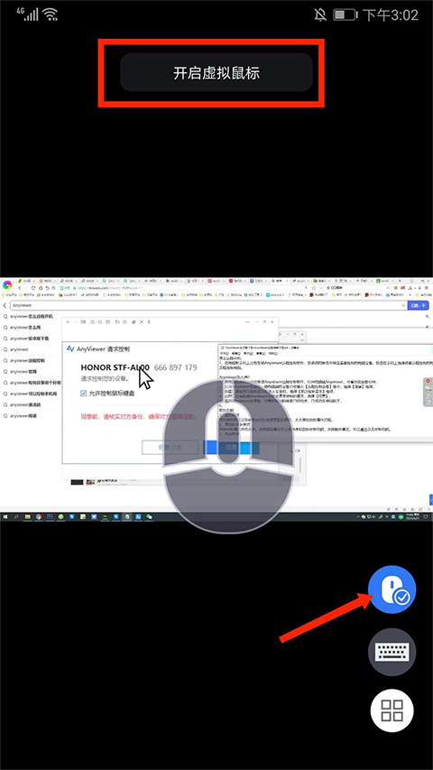 6、轻点【鼠标】图标,就能自主开启或关闭鼠标模式,在手机屏幕上滑动,便能模拟鼠标操作。