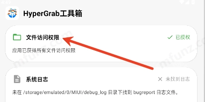 hypergrab安卓版包含文件访问权限、系统日志、电池健康度、屏幕信息和存储信息等功能,点击就能根据自身需求开启,为你带来更个性化的手机操作体验!