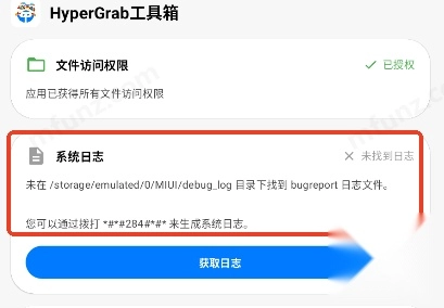 若想用hypergrab查询小米澎湃系统的推送消息,可在工具箱里开启系统日志功能。
