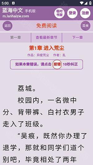 4、在阅读界面,页面出现错误可以点击报错。