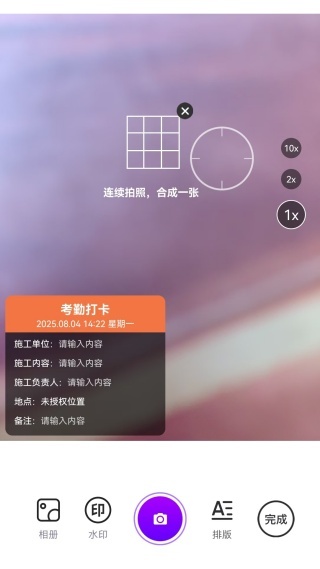 全能打卡水印相机以其丰富的功能、便捷的操作,成为工作与生活记录的不二之选,极大提升了记录的效率与质量 。在快节奏的现代生活中,无论是工作场景的记录,还是生活点滴的留念,丰富模板,满足多元需求。