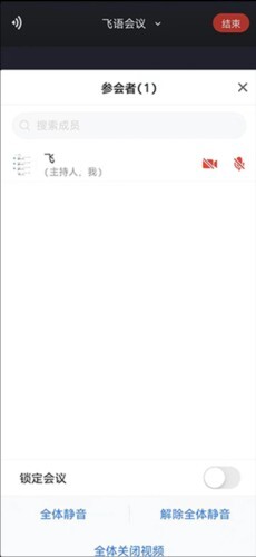 3、现在已经成功创建了一次会议,到了预定时间就能开始开会。在这里可以查看参会者列表,还能对所有参会者进行全体静音操作。