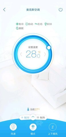 奥克斯A+具备一键开启功能,借助该功能,用户能够迅速开启空调,并对风速进行调整。