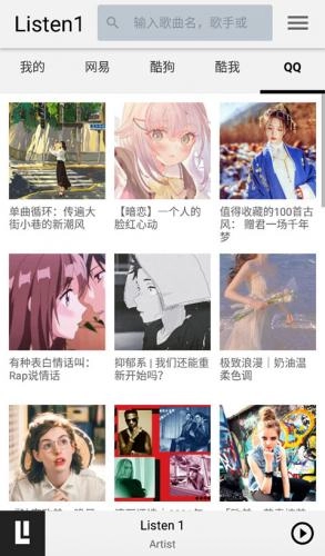 首先启动Listen1应用,进入主页面后,能看到网易云音乐、酷狗音乐、酷我音乐和QQ音乐这几个主流音乐平台的歌单推荐内容。