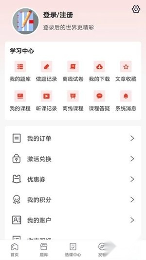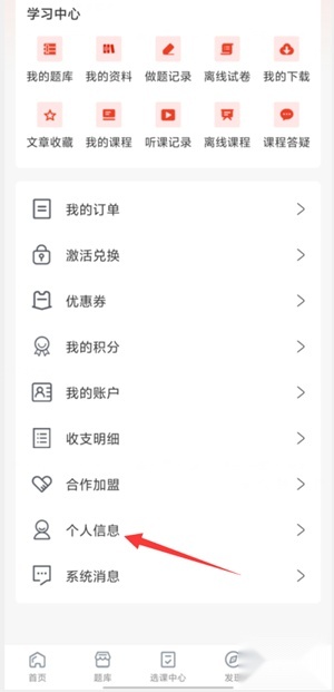 4、在学习中心能够对个人学习资料进行管理,涵盖已购买的题库与课程,可随时在线查看相关内容。