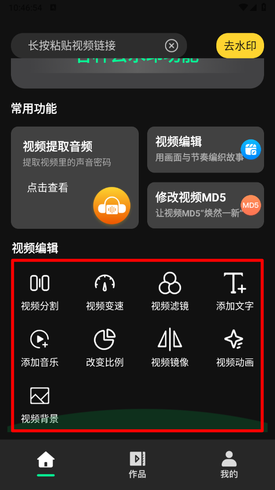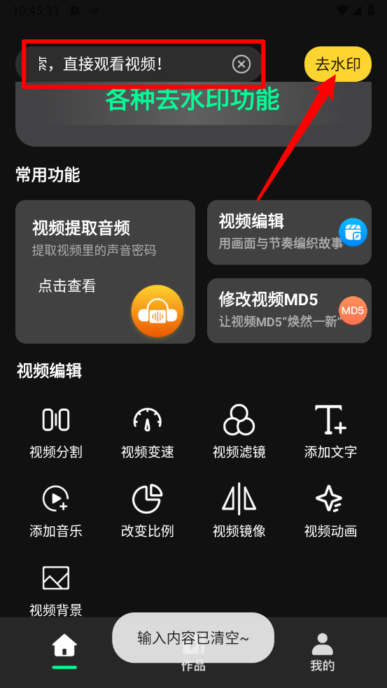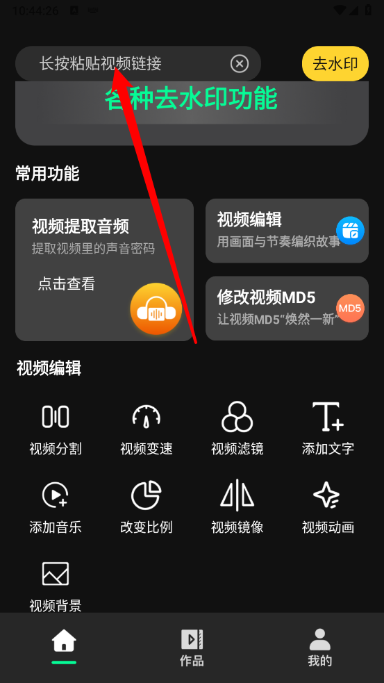 2、进入主页,点击上方的粘贴视频链接框。