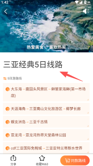 1、启动软件,挑选热门攻略(例如三亚攻略),进入攻略详情页面。