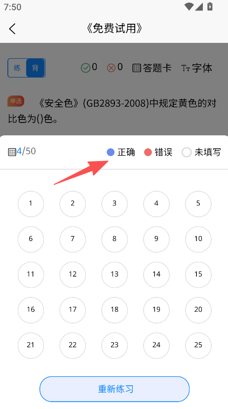 3、增加答题进度跟踪功能,考生可随时查看答题的正确、错误及未填写情况,从而能更有针对性地巩固薄弱知识点。