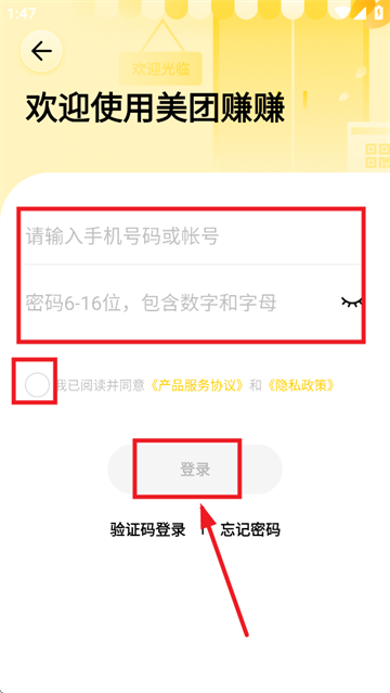 请输入手机号或者账号、密码,勾选“我已阅读并同意《产品服务协议》和《隐私政策》”,然后点击“登录”按钮即可。