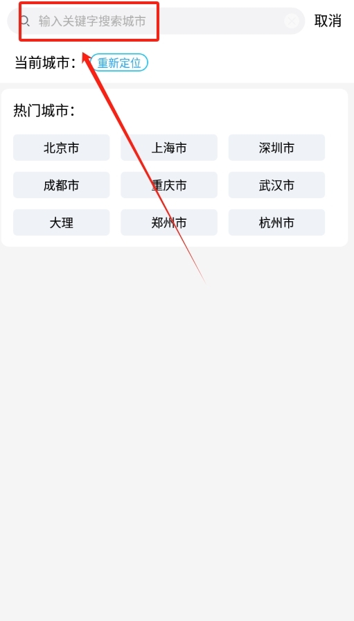 2、在搜索栏里输入城市的名称,就能查看国内各地的天气情况,进而规划出行安排。