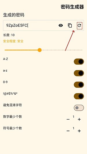 密码生成后会显示其强度,你可以查看该密码的安全级别系数。