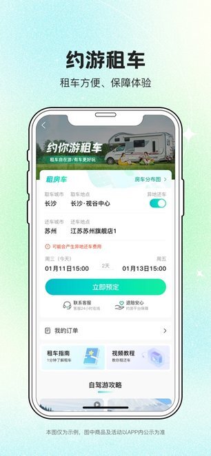 约你游是湖南快乐车行露营地投资发展有限公司打造的一站式房车旅游综合服务平台,整合了房车租赁、房车营地、房车旅游、房车文化、社交电商等多元服务。“玩房车,去交友,就上约你游”,平台聚合户外露营地、房旅线路、房车驿站、国内外旅游产品等行业资源,正全面深度布局房车旅游产业链,聚焦用户需求,提供便捷舒适的全产业链服务,让房车旅行更简单,让用户尽享房车生活的乐趣!