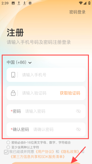 1、完成安装后,跳过海报展示界面,仔细阅读并同意“隐私政策与用户协议”。