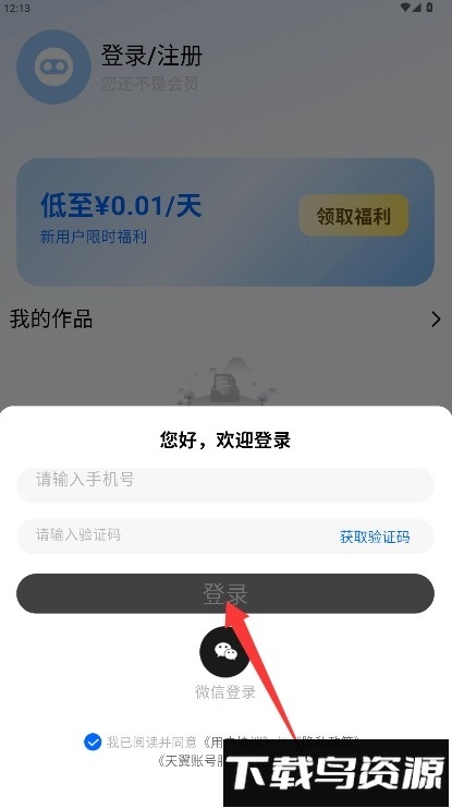 1、进入应用后,可通过输入手机号并填写短信验证码来完成登录,也能直接选择微信授权的方式登录。