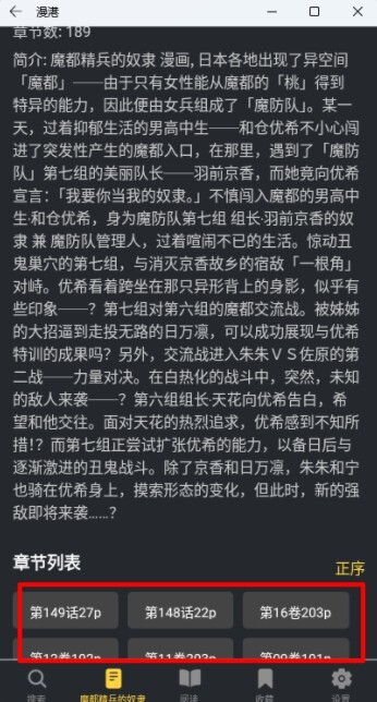 3、一键打开进入漫画详情页就可以查看相应的简介。