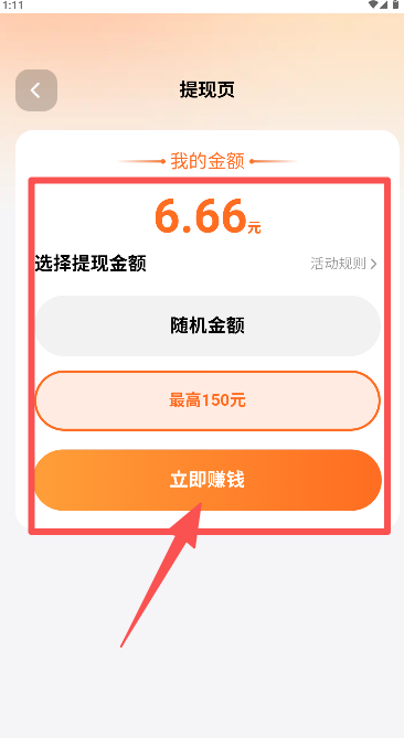 3、点击底部的“立即赚钱”按钮,完成任务以获取提现资格。