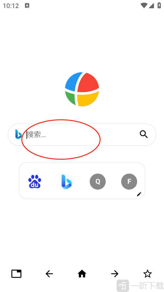 2. 打开首页,于搜索框内输入关键词或网址相关内容,随后点击搜索按钮。