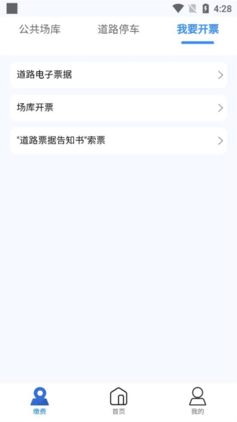 5、进入停车缴费板块,线上缴纳停车费,并查看各类票据信息,扫描道路相关票据。