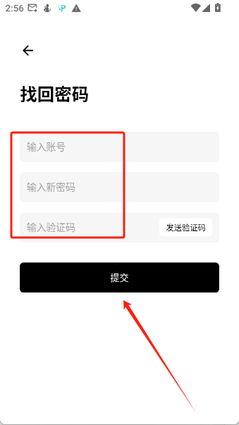 5、输入账号信息,设置新的密码,再填写验证码,最后点击“提交”按钮,就能完成密码重置了。