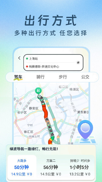 绿波实况导航是一款多功能手机导航软件,能为用户随时提供快捷导航与搜索服务,它是界面简约高效的线上导航搜索平台,支持随时开启语音导航搜索功能,拥有超全面的优质线路资源,可实时规划最佳出行路线。