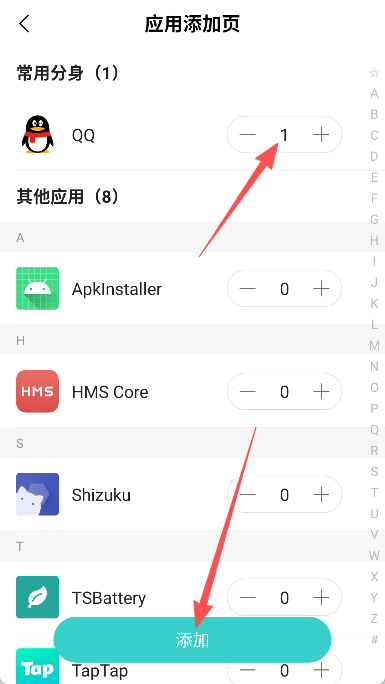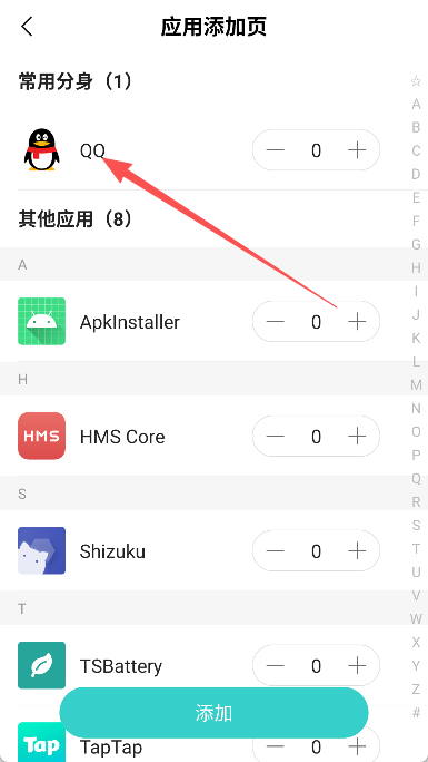 3、从列表中选择我们想要分身的应用,如QQ。