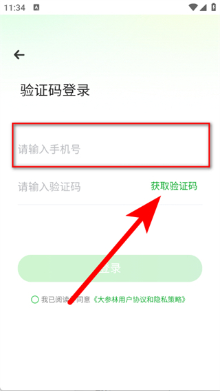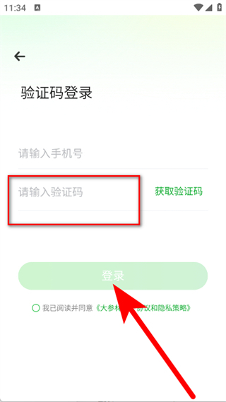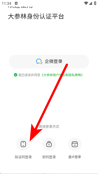 2、在选择登录方式的页面中,点击验证码登录选项,即可进入验证码登录的界面。