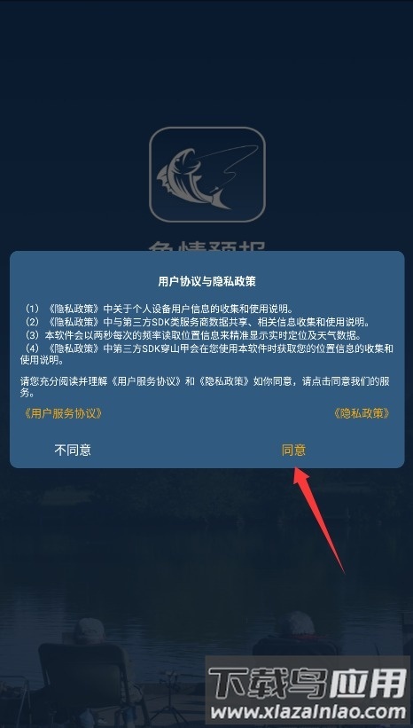 1、首次使用时,请仔细阅读服务条款与隐私政策,确认内容无误后点击同意按钮,即可进入应用。