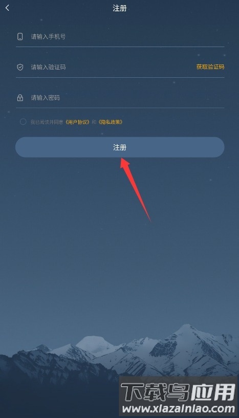 2、填写手机号与短信验证码,设置登录密码并勾选相关协议,点击注册按钮即可完成账号创建。