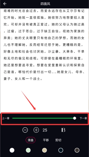4、轻点屏幕中间区域,就会弹出菜单,其中包含用于选择上一章和下一章的按钮。