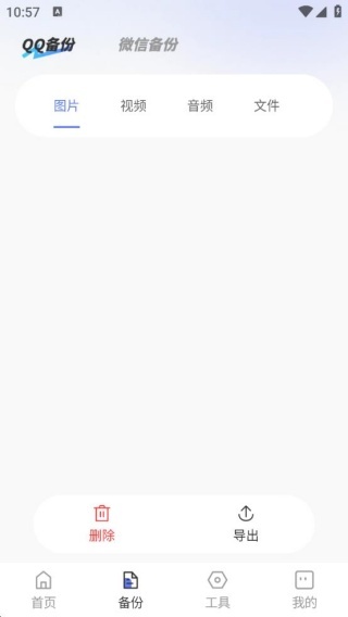 2、进入备份板块后,可查看QQ备份、微信备份等分类内容。