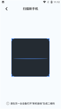 5、新手机只需选择“接收数据”,摄像头便会开启,随后扫描二维码就能完成传输
