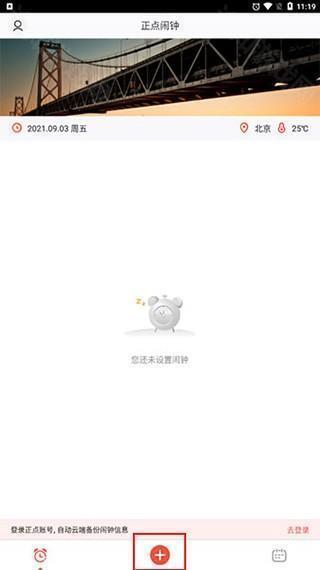 1、正点闹钟手机版,安装后打开,点击底部下方的加号按钮开始添加闹钟。