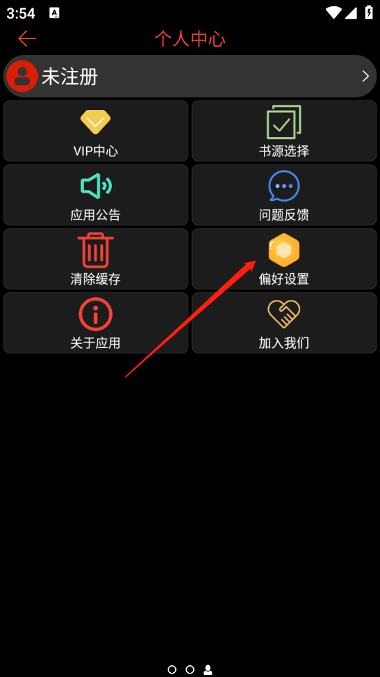 1、在个人中心页面点击“偏好设置”。