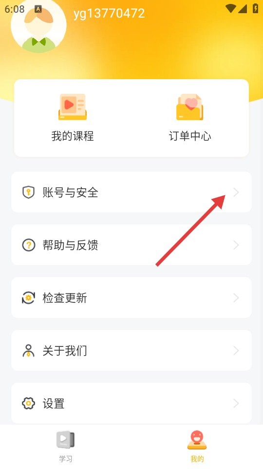 在个人中心页面,点击【账号与安全】选项,即可进入账号与安全设置页面。