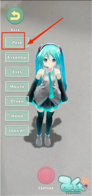 3、进入动作修改界面后,能够对角色的姿势、表情、嘴部、眼部等部位进行调整,点击pose按钮即可修改动作。