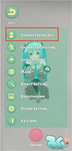 1、启动mikuture应用,进入主界面后,点击左上角的选择按钮。